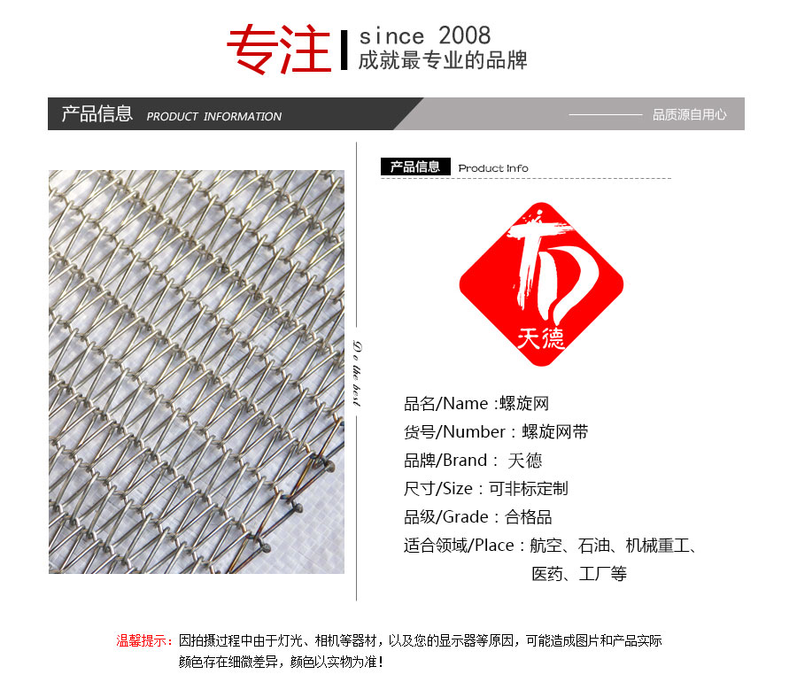 直軸型網帶:由左右交替的網條通過直串條聯結而成,該系列網帶網孔較密,網孔間距均勻,能使網帶行走平穩。該系列網帶適合于承載體積較小而質地相對較重的輸送線。