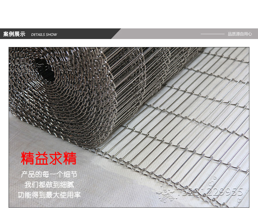 enrober wire mesh belt: also call ladder belt or flat line belt, this type belt always driven by sprockets, this belt has good air permeability, tensile force uniform, fine workmanship, enrober wire mesh belt has the characteristics of flexible rotation, good stability, high temperature resistance, pressure resistance, corrosion resistance, long service life etc. mainly used in the field of biscuit machines, light object's conveyor.