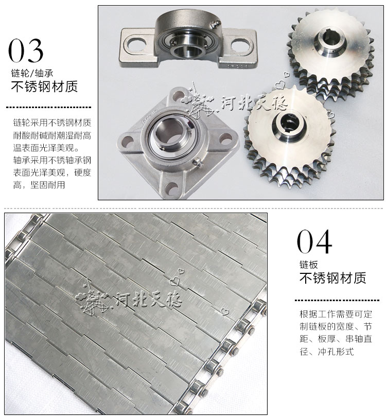 2.鏈板有不銹鋼和工程塑料等材質(zhì),規(guī)格品種繁多,可根據(jù)輸送物料和工藝要求選用,能滿足各行各業(yè)不同的需求。