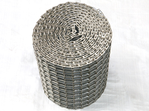 扁絲網帶是由軋扁鋼絲編織而成,可以用網帶輪驅動,其特點輸送平穩不打滑。